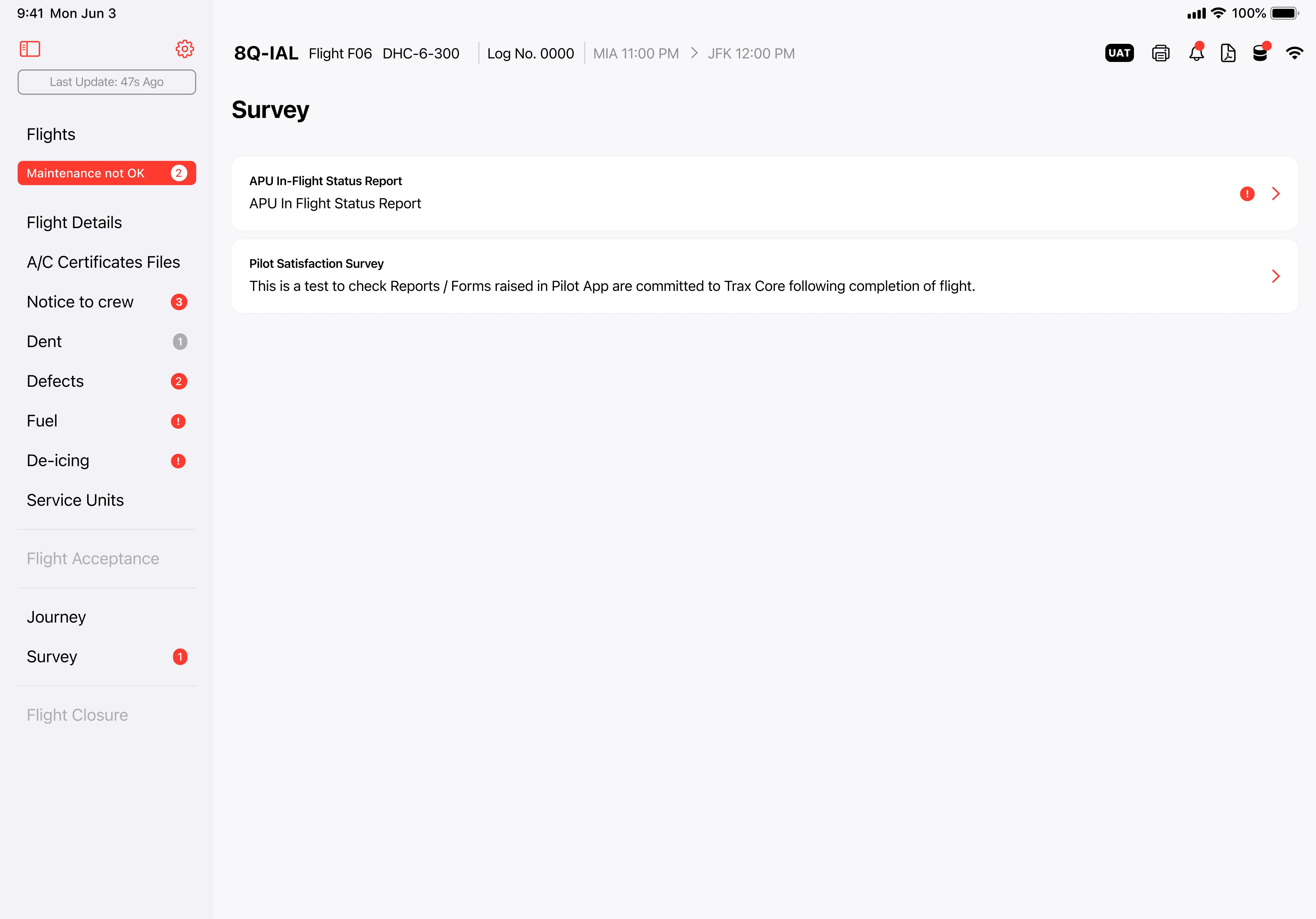 Mobile maintenance app for pilots redesign